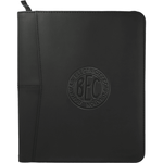Zippered closure. Removable iPad easel stand integrated into interior cover. Adjustable height on easel stand. Organizational panel built into iPad stand featuring three pen, stylus or USB memory ports, five business card pockets and a receipt or memo pocket. Two additional pen ports on padfolio cover. This case fits iPad, Kindle Fire HD 8.9", Nook HD+, or other 9-10" Tablets or eReaders.. Includes 8.5" x 11" writing pad. Pen not included.