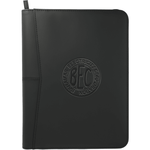 Zippered closure. Interior organizational panel features pen loop, USB memory pocket, gusseted multi-functional pocket, five business card pockets and a mesh ID window. File pocket. Features 1" metal three-ring binder. Includes 8.5" x 11" writing pad. Pen not included.