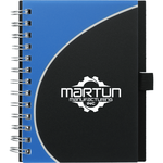 100 sheets of spiral bound white lined paper. Elastic pen loop. Includes important contacts sheet and calendar. Pen is not included.