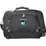 This exclusive design has a designated laptop only section that unfolds to lay flat on the X-ray belt to increase your speed, convenience and security. Back zippered compartment holds up to 17" laptops and has separate zippered pocket for files or cords. Main zippered compartment with file dividers and full organization. Front zippered pocket holds the removable techtrap elastic organizer panel and includes media pocket with access to the ear bud port. Deluxe organization, file folder and zippered pocket under flap. Quick access side pockets. Molded handle and removable, adjustable shoulder strap. Back panel designed to slip over trolley handles. Exterior TSA hangtag for guideline information. Free run charges for embroidery up to 7500 stitches.
