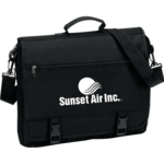 The Mariner Business Messenger Bag features an open main compartment with clipped flap closure. The expandable main compartment has a front zippered pocket and a deluxe organizer under the front flap that includes multiple pockets and pen sleeves. It also features a padded top carry handle and a detachable, adjustable shoulder strap.
