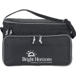 Grill and Chill set includes the essentials for a successful barbecue on the go. Metal tongs, BBQ fork and spatula are stored in a front zippered organizer pocket. Cooler bag includes a shoulder strap, insulated main compartment, and a front storage pocket. Insulated main compartment of cooler bag is perfect for transporting food to your next barbecue.