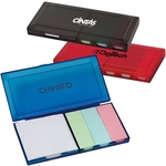 This note holder comes complete with one 3” x 3” sticky pad and three 3” x 1” colorful self-adhesive note flags.