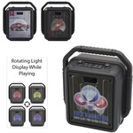 Powerful, portable 20 watt party speaker and 8” woofer with multi-color flashing LED lights