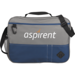 This bag is great for conventions. Zippered main compartment. Large front opening for flyers or pamphlets with D-Ring. Lower card pockets and a pen pocket. Side mesh water bottle pocket. Adjustable shoulder strap and top grab handle.