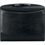 Exterior front pocket. Pen loop. Interior pockets. Includes 8.5" x 11" writing pad. Refills available at leedsworldrefill. Refill item number: 9091-01. Pen not included.