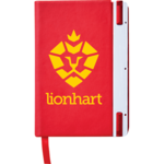 PU, hard bound journal. Color matching ribbon page marker. 80 sheets of cream lined paper. Mini plastic pen and mini stylus included. Pen imprint not available.