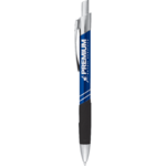 Metallic barrel with rubber grip and chrome accents. Pen includes premium blue ballpoint ink cartridge. Laser 360 is available on this style.