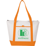 The Lighthouse 24-Can Non-Woven Boat Tote Cooler has a Zippered main compartment with double 24" handles. Open front pocket with pen loop. Foil lining.