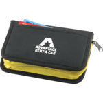 The 23 Piece Tools Set includes a 6-foot metal tape measure, 4 sockets, a bit driver, 2 precision screwdrivers, a triangular shaped level, a magnetic bit holder, 3 Allen wrenches and 10 screwdriver bits. Zippered storage pouch with open-top pocket on front cover.