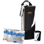 The Titan Deep Freeze® golf cooler holds 6 cans plus ice packs and features a long, zippered opening that pulls down for easy access. SuperFoam® high performance insulation with Therma-Flect® radiant barrier ensure that drinks stay cold through 18 holes of golf. The exterior includes a mesh pocket with neoprene can insulator; a padded handle with clip for attaching to golf bags and water and stain resistant Rhino-Tech® material. Also included are two 350g ice packs to enhance performance. The cooler can also be used to keep food cold. Loose ice not recommended.