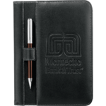 External elastic loop and 3 internal elastic loops for holding USB memory flash drives and pens. 4 business card pockets. Clear ID window. Document pocket. Holds most Kindle and Nook products. Includes 5" x 8" lined writing pad. Refills available at leedsworldrefill. Refill item # 9091-06RF. Pen not included.
