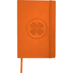 Flexible cover with built in elastic closure. Ribbon page marker. Document pocket on interior back cover. Includes 80 sheets of lined paper.