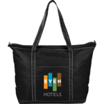 Large zippered main compartment. Perfect bag or everyday essentials, beach bag or travel bag. Large front slash pocket. Color pops and accent stitching.