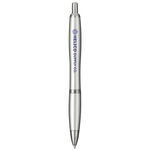 Vibrant colored barrel with matching pro-grip for writing comfort. Chrome accents. Retractable click action mechanism, black ballpoint ink cartridge with tungsten carbide tip.