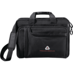Deluxe front organizer conceals all accessories and documents. Rear accordion file divider. Padded computer compartment holds most computers up to 15". Detachable, adjustable shoulder strap.