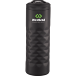 Design features an intricate geometric cut. Leak-Proof designed slide open lid. Double-wall copper vacuum insulated stainless steel construction. Keeps drinks hot for 8 hours and cold for 24 hours. Trendy, durable powder coating. Leed's Exclusive. 16oz.
