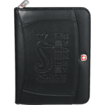 Zippered closure. Front pocket. Three multifunctional storage loops, two business card pockets and an ID window. Includes Wenger® removable spiral bound journal with 100 sheets of lined paper. Signature Wenger® lining. Pen is not included.