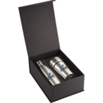 Do not miss out on one of the best gift sets of the year. Includes the Copper bottle 1624-74 17oz and Milo Tumbler 1625-28 20oz. Durable, double-wall stainless steel vacuum construction with copper insulation, which allows your cold beverage to stay cold for 24 hours and at least 8 hours for hot beverages. The construction also prevents condensation on the outside of the piece. Leed's Exclusive. 20oz. Gift Box is not decorated. There might be tiny color variance across the components in a set. “For additional protection, all Drinkware pieces will be individually polybagged and inserted in the gift box.”