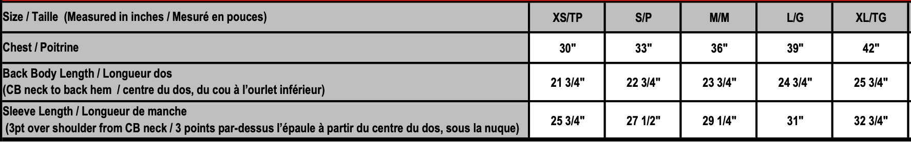 • Sizing Details