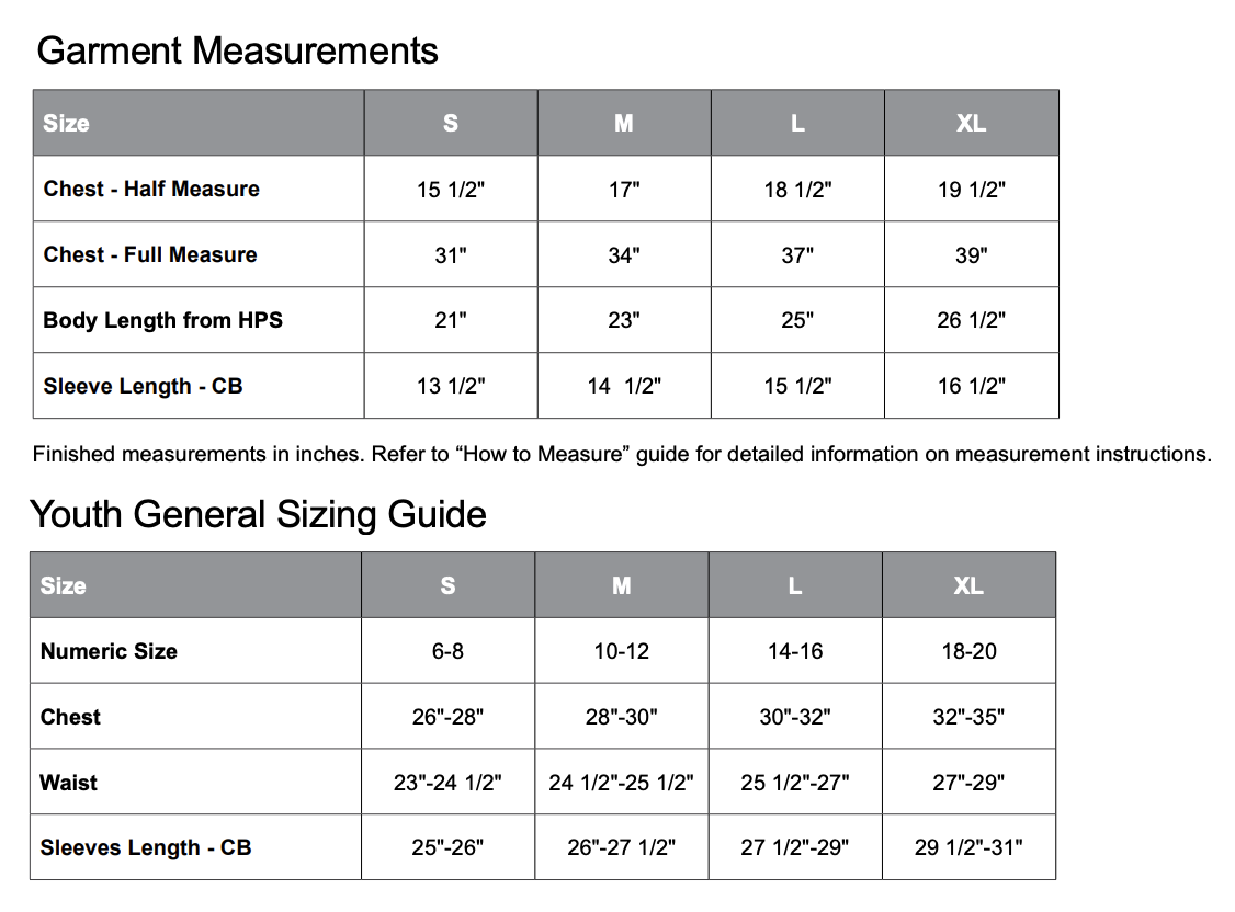• Sizing Details