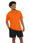 Your new go-to for big events, this tee is built to move, made to print, and priced to win with a classic fit, and performance features that make it anything but basic. Plus, this is available in long sleeve, ladies' and youth companion styles! 6.4 oz, 100% performance polyester interlock with wicking technology. No Bleed Fabric (NBF) created with a unique cationic dye process for easy printing. Taped neck for comfort and durability. Side seamed. Double needle cover stitch at sleeve and bottom hem. Breathable. Snag resistant. Classic fit. Due to the nature of polyester, special care must be taken throughout the decoration process. Please refer to product size spec PDF file for more details.